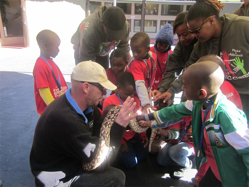 Alex children get to feel a snake and a baby croc