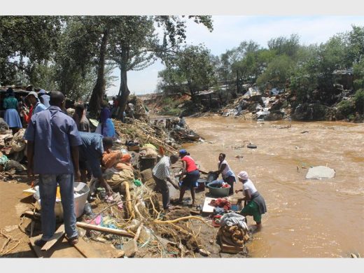 Last year’s victims of the flooded Jukskei River retrieve what’s left of their household items.
