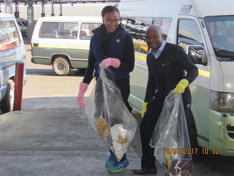 Busamed staff clean up Pan Africa Taxi Rank