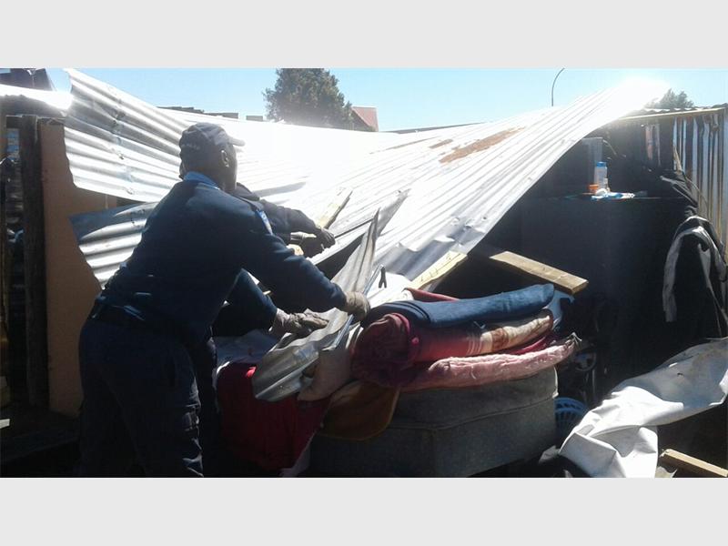 Metro police survey the area after demolishing six illegal shacks.
