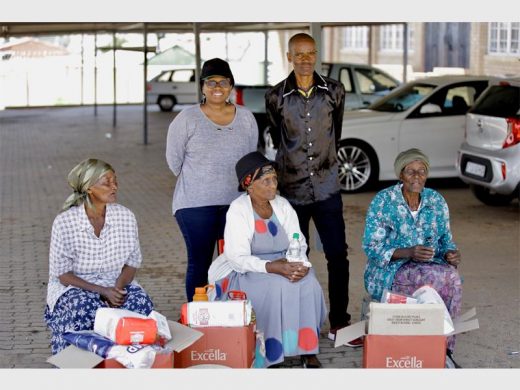 Elderly fire victims with food hampers from Heineken Breweries. Back: Tutu Malinga, sustainability manager of the company and councillor Oupa Sefako. Photo: Ndumiso Xolo
