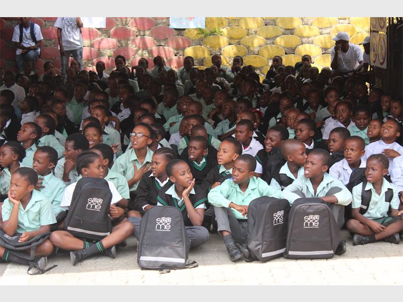 This was said by the company, Discovery Insure at a pilot event which highlighted the dangers faced by children going to and from school and generally. The event was held at Ikage Primary School after a similar drive at Emfundisweni Primary School where 1 000 reflective bags, caps, beanies, water bottles and a booklet on road safety tips under the education safety theme ‘See Me’ were distributed at each school. The antics of mascots, Mr Safety and Ms Caution added to the children’s appeal together with motivation and entertainment event ambassador and U17 Girls National Soccer team coach Simphiwe ‘Shorty’ Dludlu.