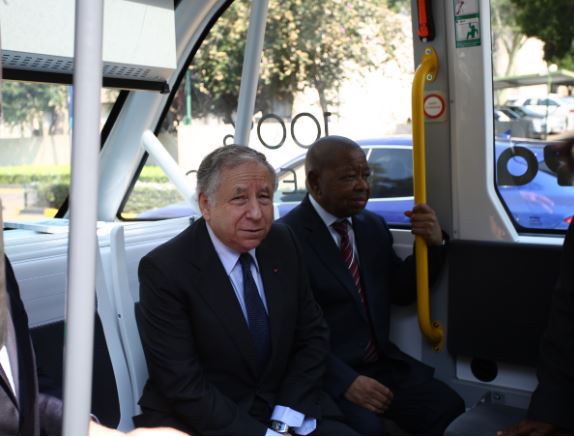 Transport minister Blade Nzimande and the President of the FIA, Jean Todt were given an opportunity to drive the Navya Autonomous Electric Shuttle, the first autonomous, driverless, fully electric, commercially available vehicle demonstrated in South Africa.