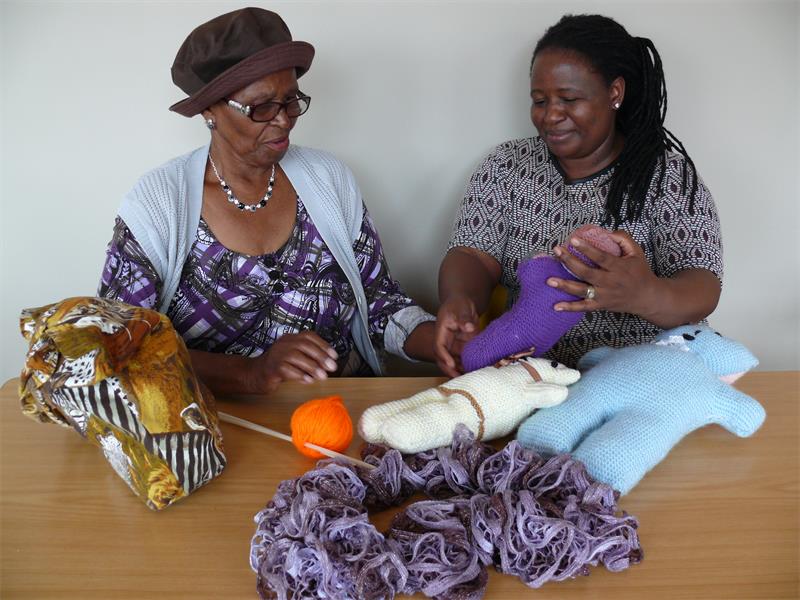 According to the founders, the gogos come to the centre three days a week to learn a variety of handcrafts such as knitting and crocheting.