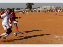 The referee ignored appeals by Grandiose players and their bench and waved play on in a game whose first half entirely belonged to the home side while the second stanza was 50–50 as the Diepsloot side grew in confidence.