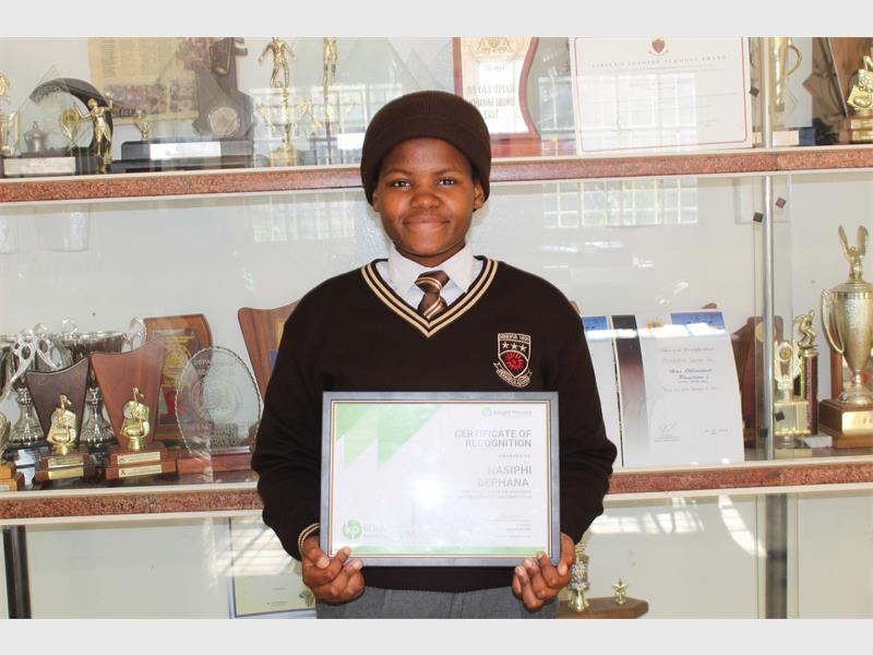 The 16-year-old Nasiphi Dephana from Minerva Secondary School in Alexandra took third place at this year’s Bokamoso creative essay writing competition which recently held in Johannesburg.