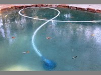 This reporter woke up to a swimming pool that had frozen over and a table cloth that had been decorated with delicate ice crystals.