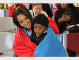 Miss SA warms Alex with blankets