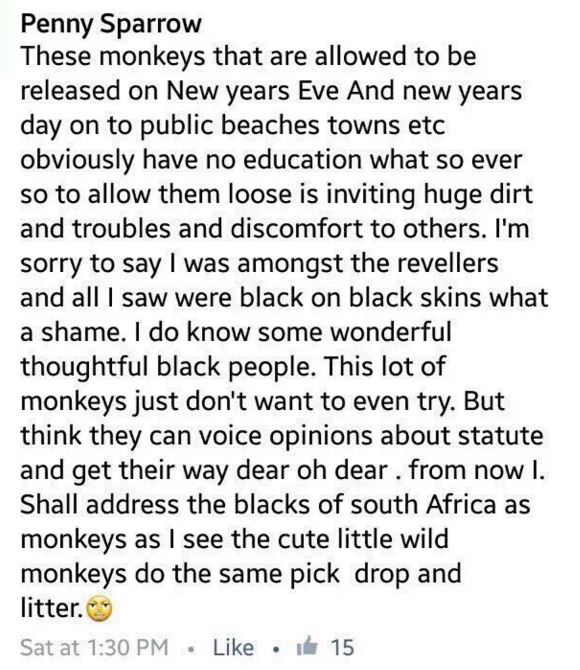 Read Penny Sparrow’s statement on why she wrote the post