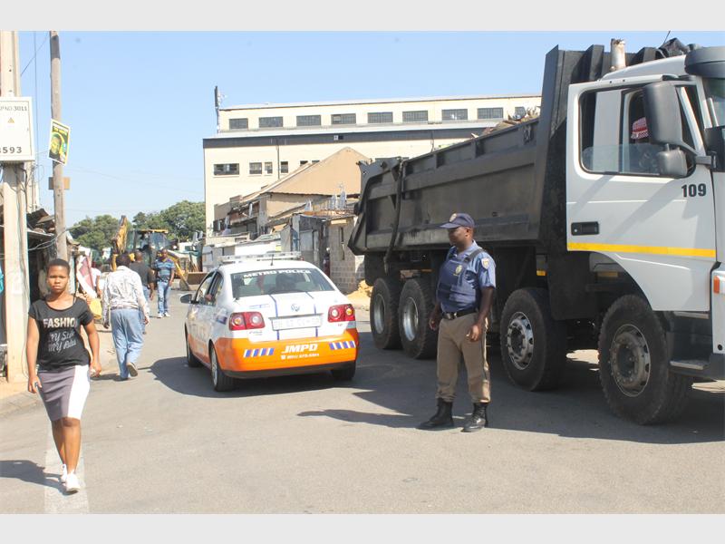 ALEXANDRA - Metro police escort private trucks in cleaning up Alexandra