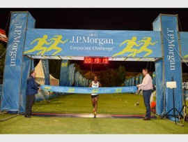 Olebogeng Masire, representing Sibanyegold claimed first place as he crossed the JP Morgan Corporate Challenge finish line in a time of 19:18:00 with Tshamano Setone of the Passenger Rail Agency of SA finishing in second place clocking in a time of 19:26:00. They were followed by Ntiti Konana of Sibanyegold in third place in a time of 19:32:00.