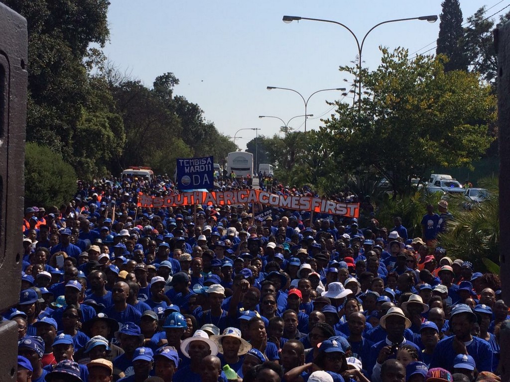 Thousands of Democratic Alliance members have embarked on a march from Pieter Roos Park to the Constitutional Court earlier this morning, calling for Jacob Zuma to step down as the president of South Africa, in the Joburg CBD.